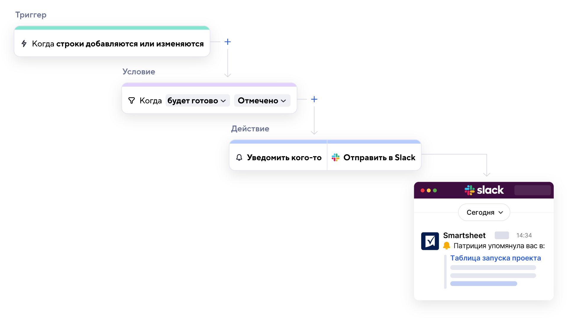 Smartsheet интегрируется с уже используемыми инструментами, что позволяет централизованно обрабатывать разрозненные данные. Благодаря готовым интеграциям, API и подключениям к популярным инструментам автоматизации рабочих процессов платформа обеспечивает бесперебойный поток данных, соответствие вашим потребностям и масштабирование по мере роста вашего бизнеса.