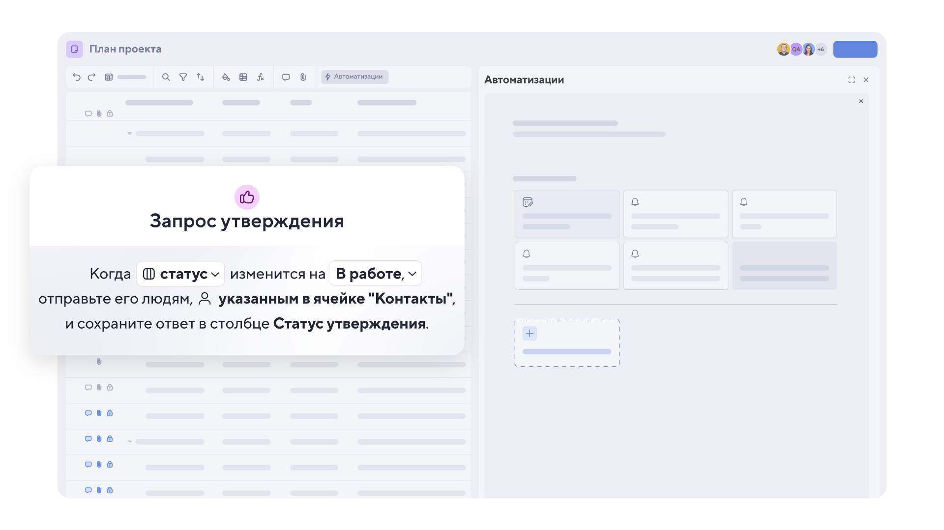 Автоматизируйте повторяющиеся задачи, экономьте время и сокращайте количество задач, которые выполняются вручную. Получайте аналитические данные для принятия обоснованных решений и выявления тенденций. ИИ Smartsheet точно и эффективно обрабатывает сложные вычисления с помощью автоматизированных формул, чтобы вы могли сосредоточиться на наиболее важной работе. Подробнее о функциях на основе ИИ — в блоге Перспективы Smartsheet.